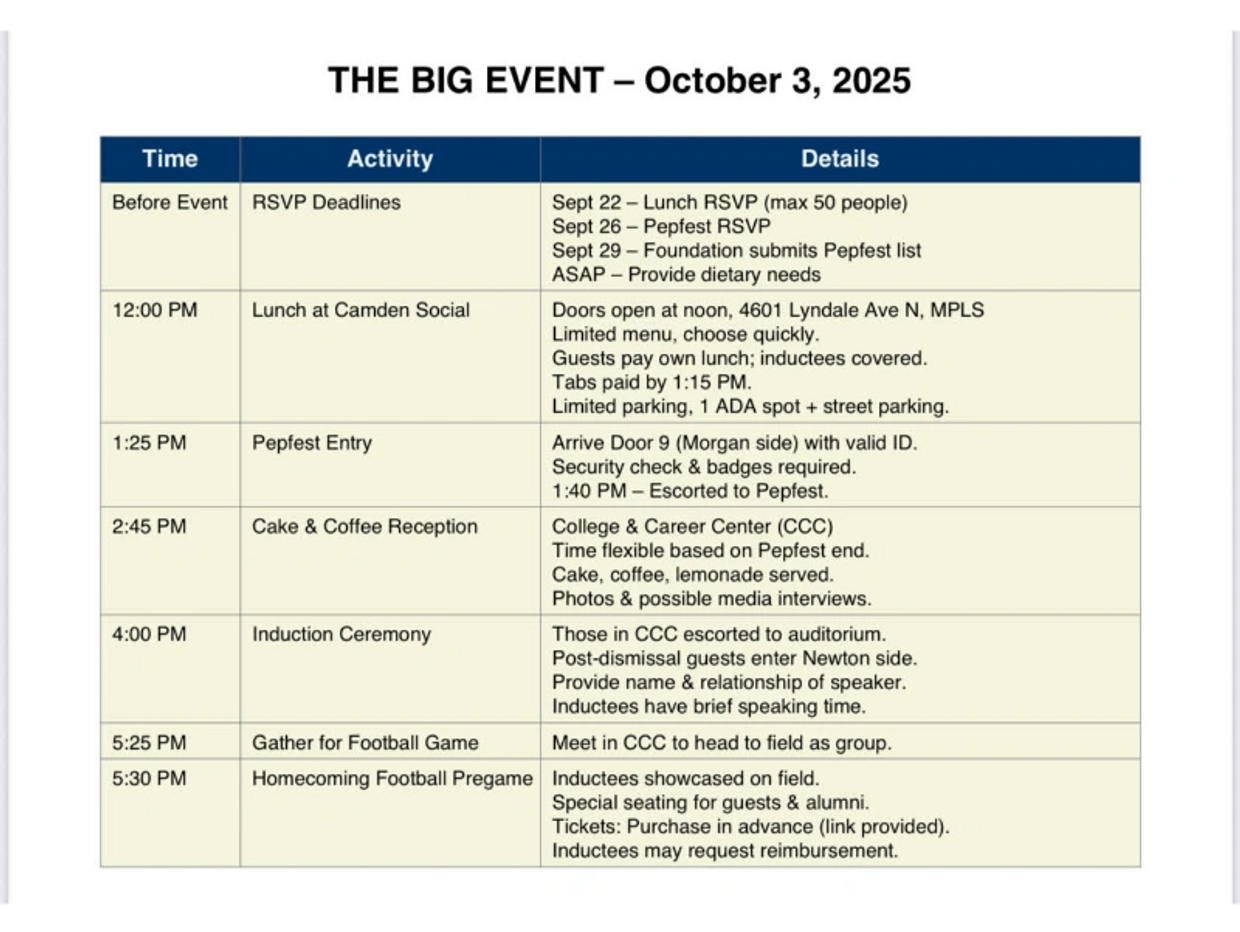 UPCOMING EVENT: the 2025 Hall of fame induction will be in the auditorium at 4PM sharp.