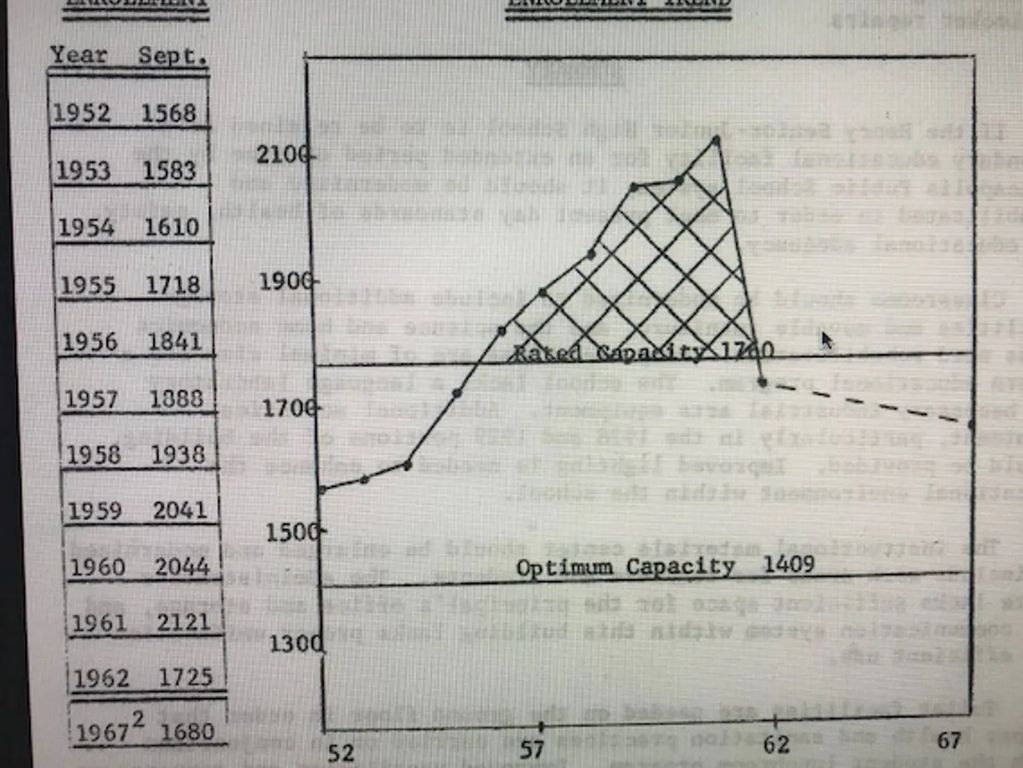 This enlargement is fascinating. Look at how Patrick Henry enrollment went from 1,568 students in 1952 and it peaked at 2,121 students in 1961.