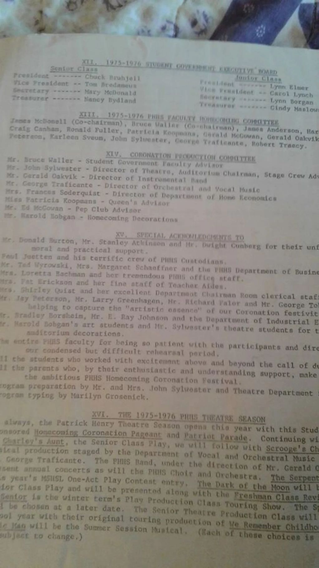 This document has names of many faculty, administration, staff, and others from 1975-76. Note the homecoming and coronation committees.